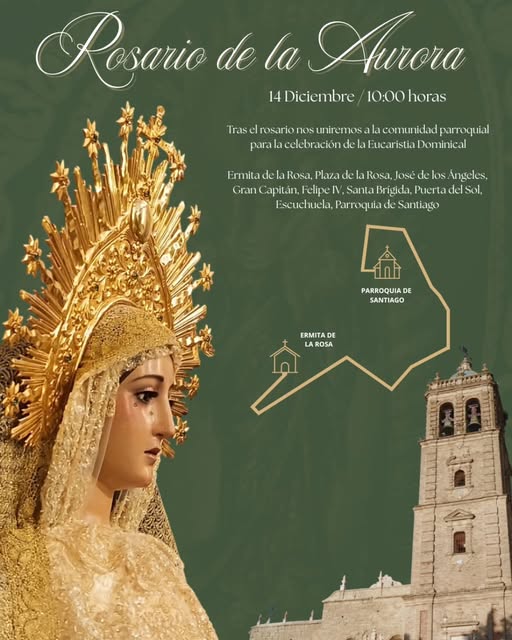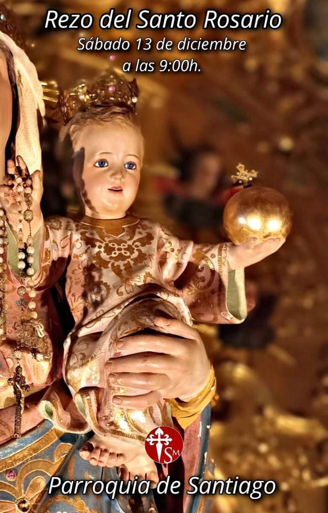 ACTIVIDADES RELIGIOSAS:Rezo del Santo Rosario en la Parroquia de Santiago el sábado a las 9:00h.
