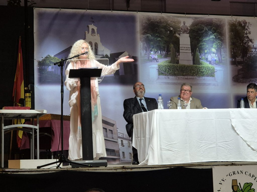 Como cierre, homenajeó a la vendimia y a los oficios del vino, invitando al escenario a trabajadores como Antonio Morales (arrumbador), Asunción Salido (trabajadora del campo), Eladia Durán (sabiduría del vino), José Luis Jiménez (tonelero) y Rafael Delgado,(comercial exportacion vinos) con los que brindó por la herencia vitivinícola de la tierra.