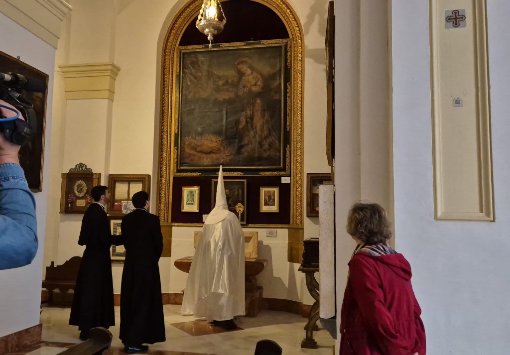 A lo largo del recorrido, la hermandad se detuvo para visitar el primitivo cuadro de la Virgen de la Paz que se encuentra en la Basílica de San Juan de Ávila, donde se realizó una ofrenda floral, como muestra de veneración y agradecimiento.