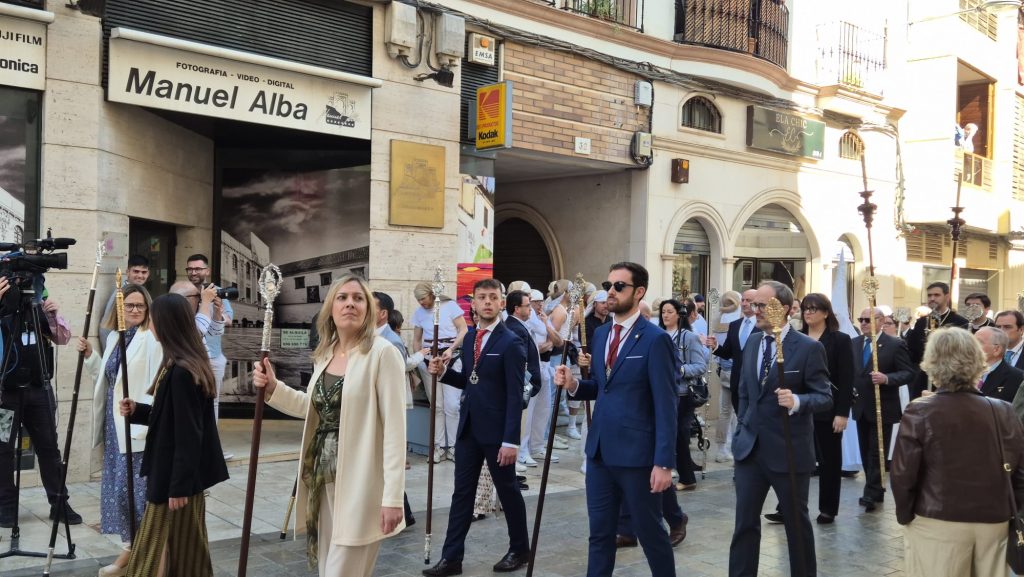La procesión, marcada por una brillante luz y una temperatura primaveral, estuvo acompañada por una representación de todas las hermandades de la Semana Santa, la Asociación La Pasión y el pregonero de la Semana Santa, Rafael Delgado Portero.