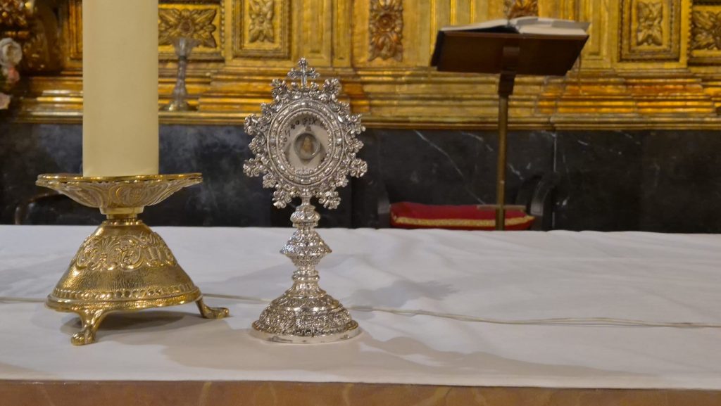 La salida procesional tuvo lugar tras la eucaristía solemne celebrada en la parroquia y presidida por Antonio Ramírez, párroco de San Sebastián, junto a Fernando Suárez, rector de la Basílica de San Juan de Ávila, y Antonio Palma, capellán del convento de Santa Clara. La celebración estuvo animada con los cantos del Coro del Comedor Social y al final los devotos pudieron besar la reliquia del dedo del santo, una de las tradiciones esperadas de esta fiesta.