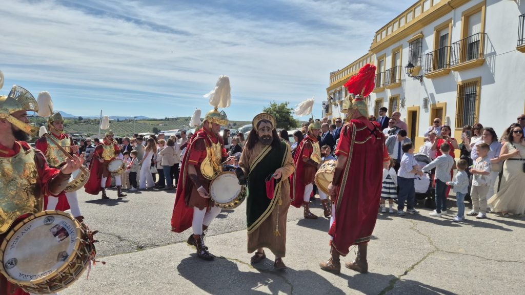 A las ocho en punto de la mañana, el sonido inconfundible de la Centuria Romana Munda rasgó el silencio para anunciar que el Nazareno aguardaba en San Agustín. Desde la Plaza de la Rosa, los Romanos recogieron a los costaleros, mientras una multitud de devotos, visitantes y montillanos ausentes se congregaba en San Agustín.