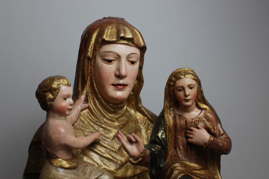 La valiosa imagen de Santa Ana Triplex, datada entre los siglos XIV y XV y ubicada en el coro bajo del monasterio de Santa Ana de Montilla, ha sido restaurada por el montillano Miguel Ángel Sánchez y el lucentino Manuel Espejo. La pieza se exhibe junto a otras 20 obras en la exposición El legado de la fe. Restauración del patrimonio cofrade provincial, que puede visitarse en el Palacio de la Merced, sede de la Diputación de Córdoba, hasta el 27 de febrero.
