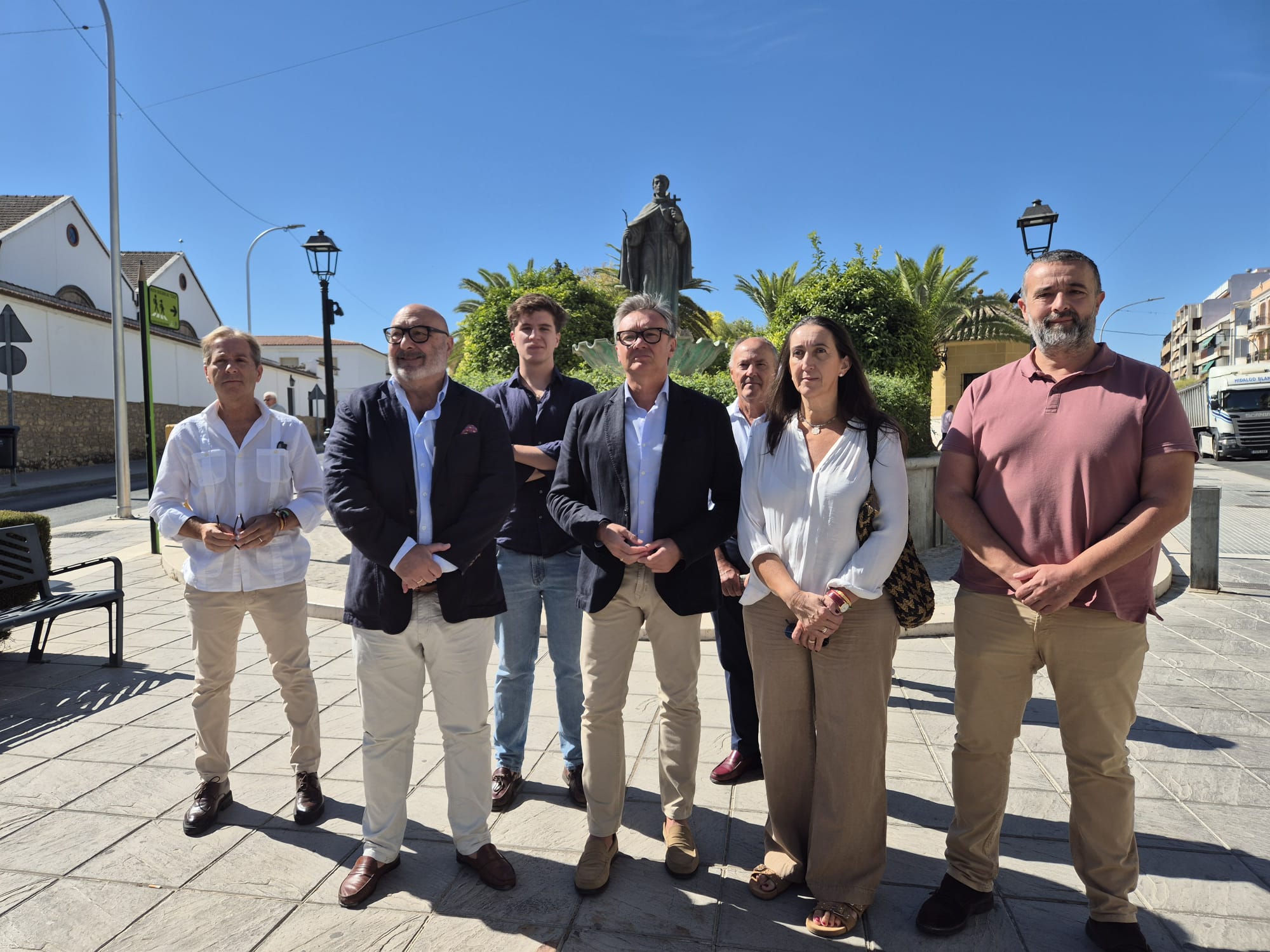 El portavoz de Vox en el Parlamento de Andalucía, Manuel Gavira, acompañado por la presidenta de Vox Córdoba, Paula Badanelli; el diputado autonómico Alejandro Hernández; el diputado provincial Rafael Saco; y el jefe de organización de Vox Córdoba, el montillano José Ramón Márquez, han denunciado hoy, durante una visita a Montilla, la negativa del Gobierno de España a conceder ayudas extraordinarias a los agricultores afectados por el mildiu, una enfermedad que ha causado graves pérdidas en el sector vitivinícola andaluz, especialmente en la provincia de Córdoba.