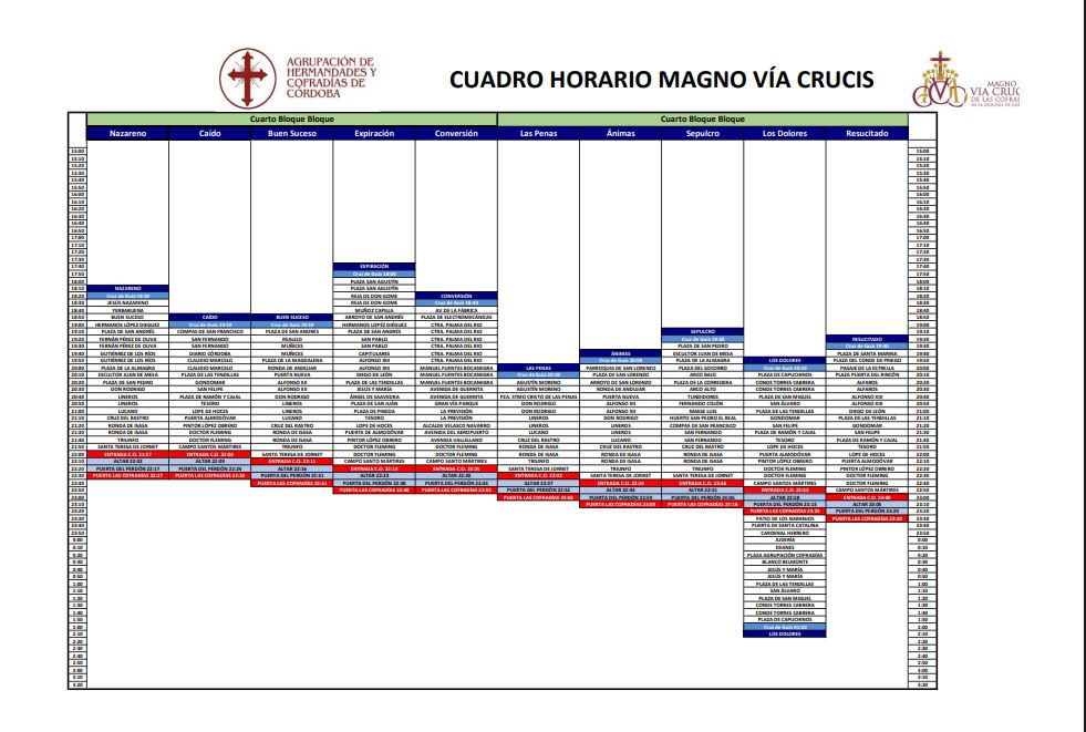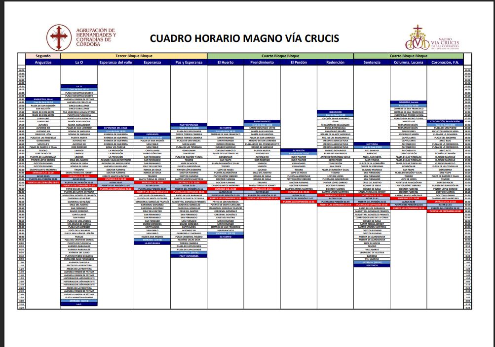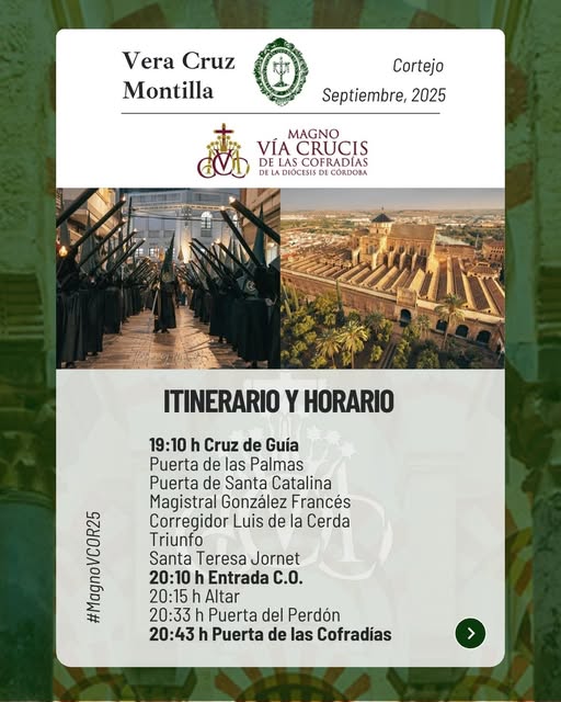 La Agrupación de Hermandades y Cofradías de Córdoba ha hecho públicos los itinerarios y horarios oficiales del Magno Vía Crucis que se celebrará el próximo 11 de octubre en la capital cordobesa. La jornada, de carácter extraordinario, reunirá a numerosas hermandades de toda la diócesis en un acto que marcará un momento histórico de devoción pública y unidad cofrade.